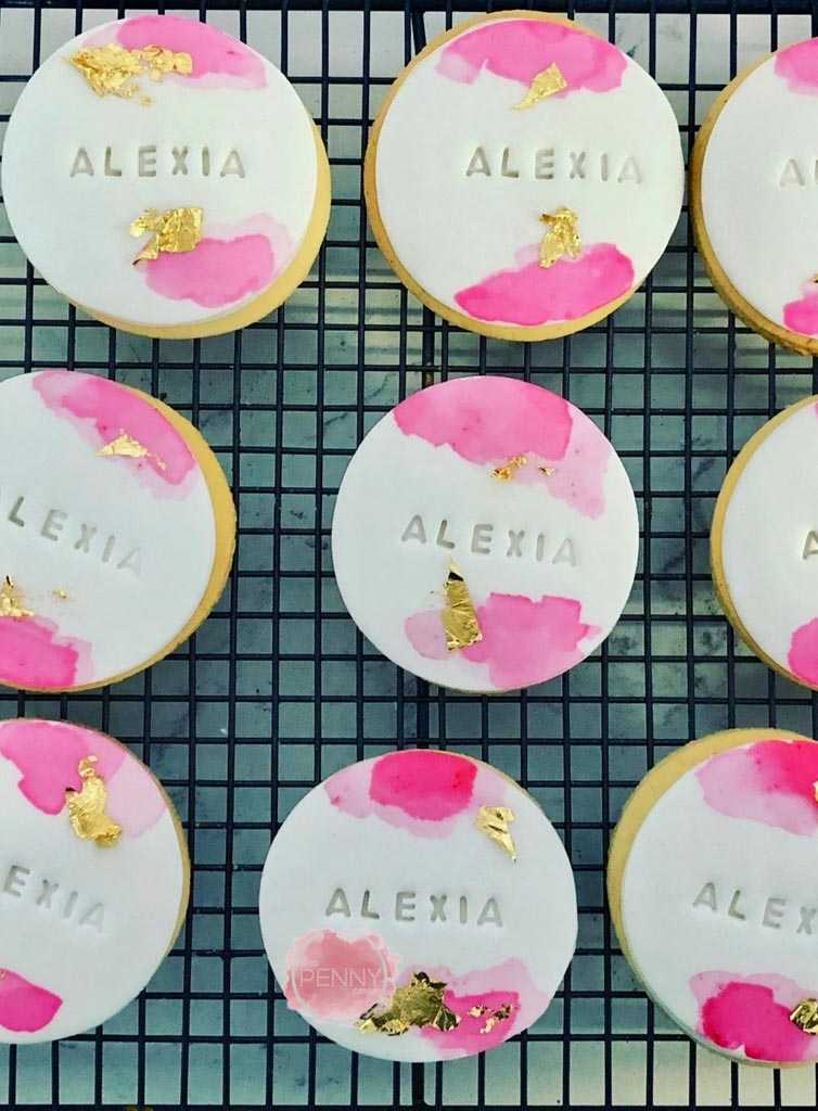 Miss Penny Cakes, Small Sweets, Pink and Gold Personalised Fondant Cookies